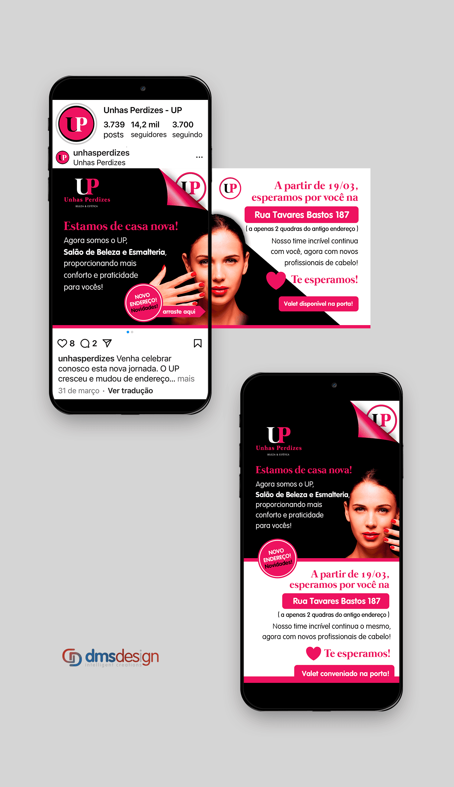 Criamos o website e materiais gráficos impressos para o Salão de Beleza UP - Unhas Predizes.